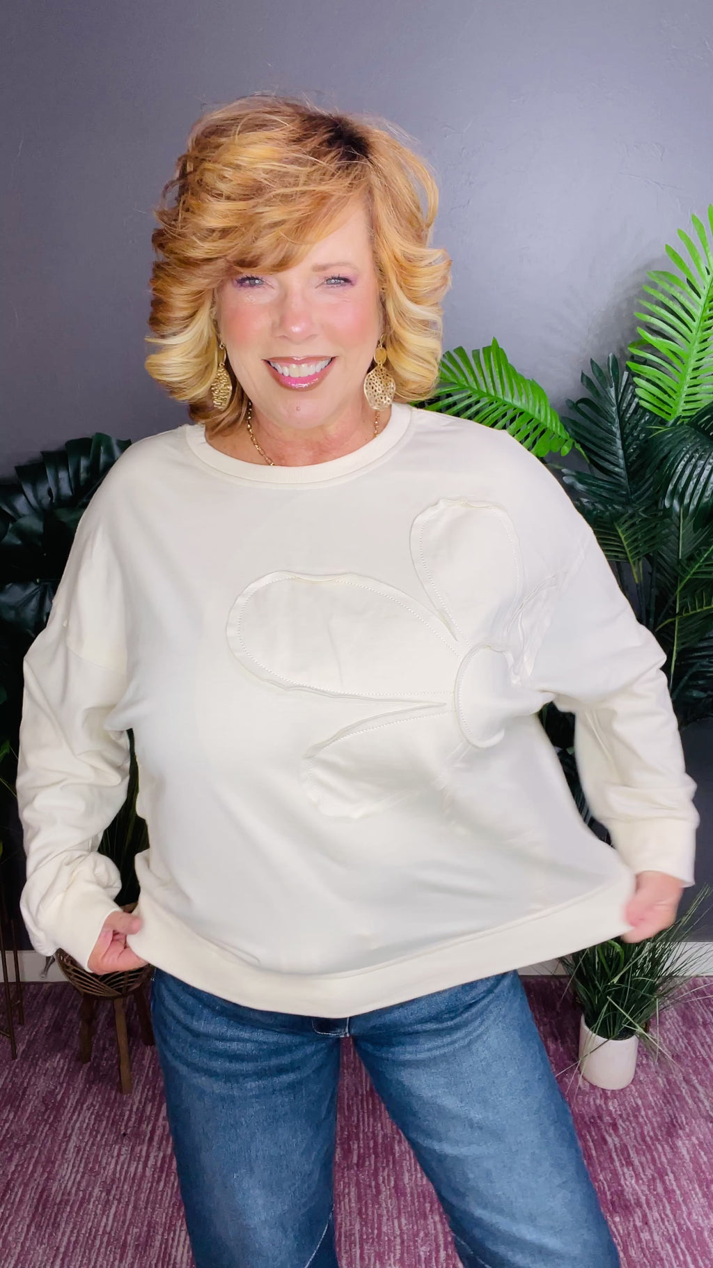 - The big flower patched design adds this casual top a bit feminine vibe.