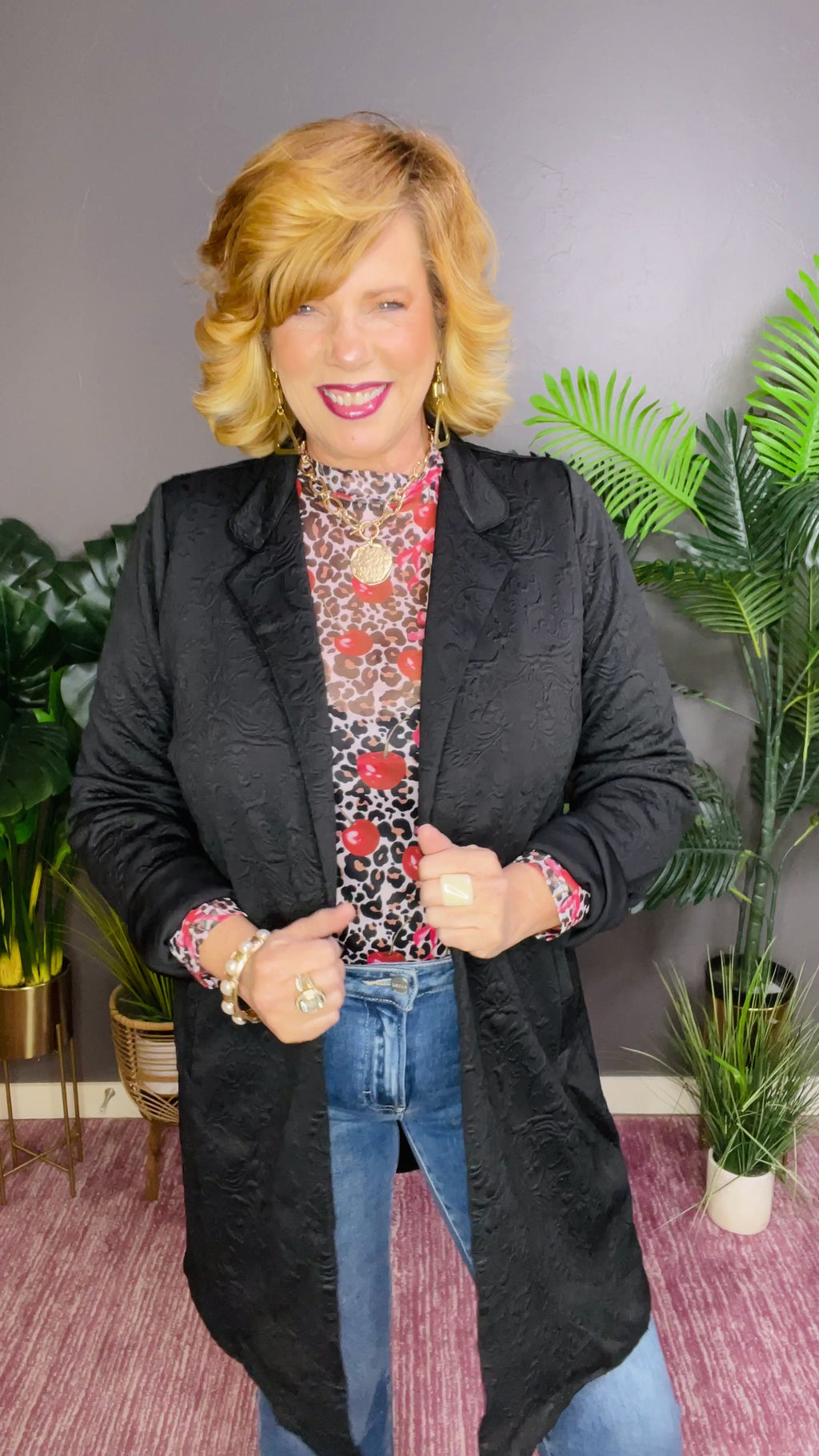 Make a statement in this elegant jacquard midi coat, where intricate texture meets timeless design. This rich pattern fabric brings depth and sophiscation to your outerwear collection. This midi length offers graceful coverage, while the structured silhouette and refind detailing create a polished look.