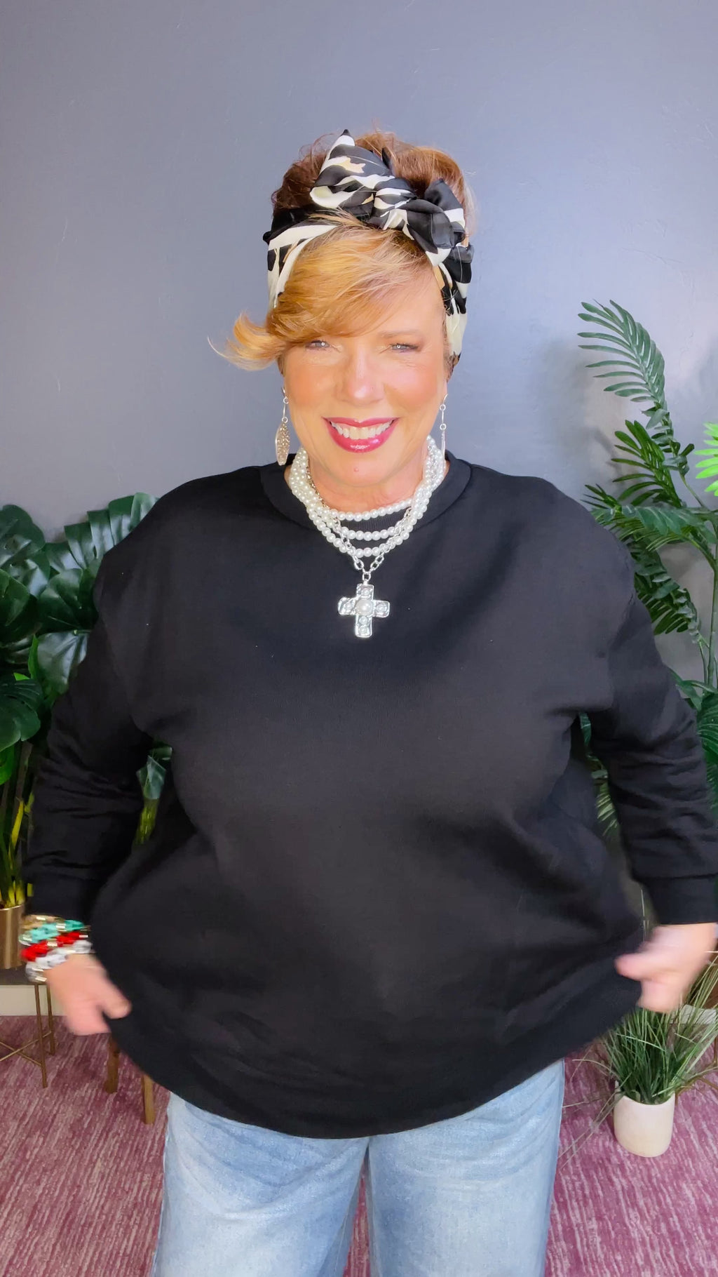 This relaxed fit knit top offers an easy, laid-back silhouette with drop shoulders and a comfortable drape. Designed with angled side patch pockets for added detail and function. Ribbed trim at the neckline and hem gives it a clean, finished look that's perfect for everyday styling.