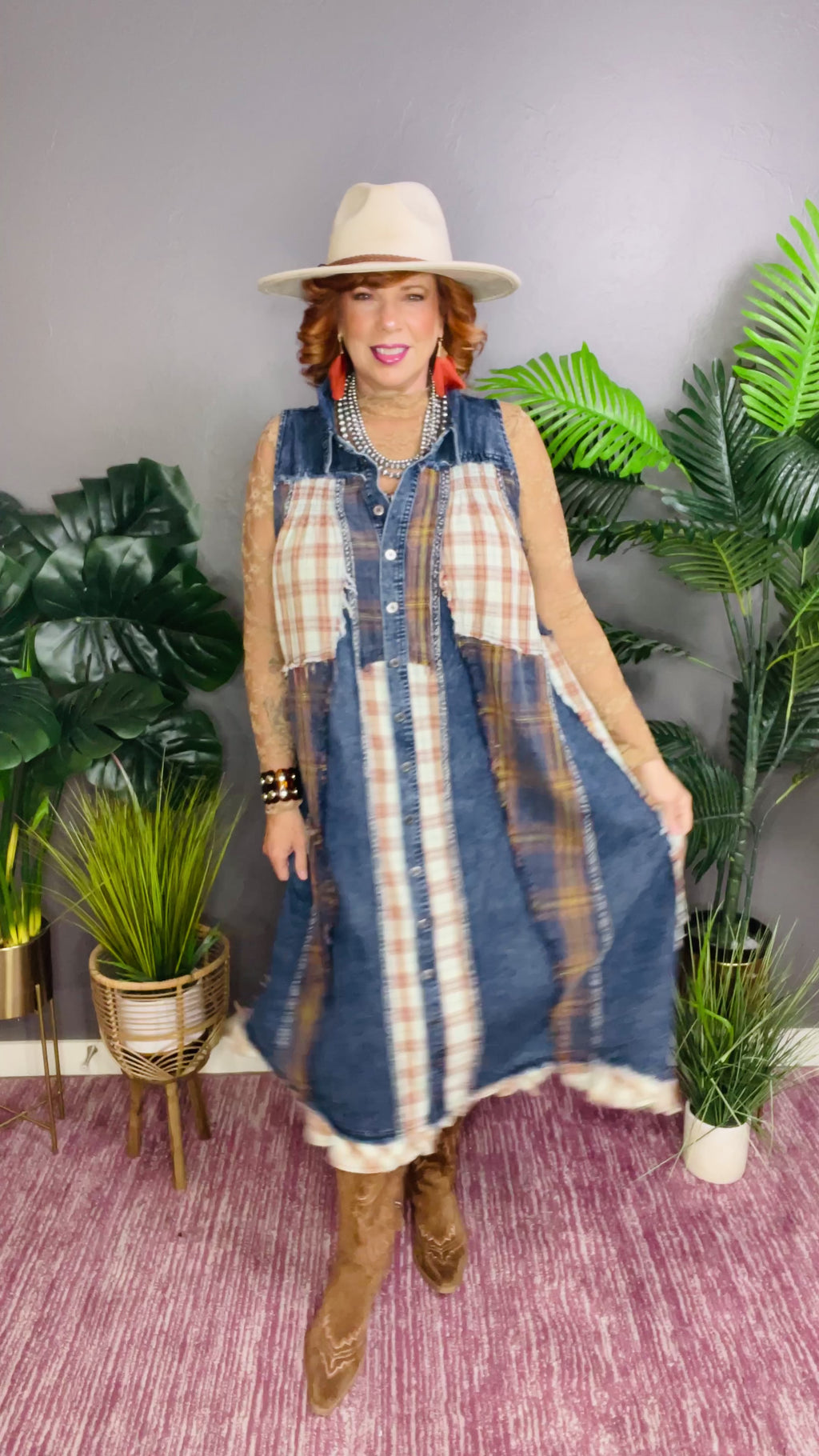 Plaid Mix Ruffle Hem Button Down sleeveless dress/top/outerwear