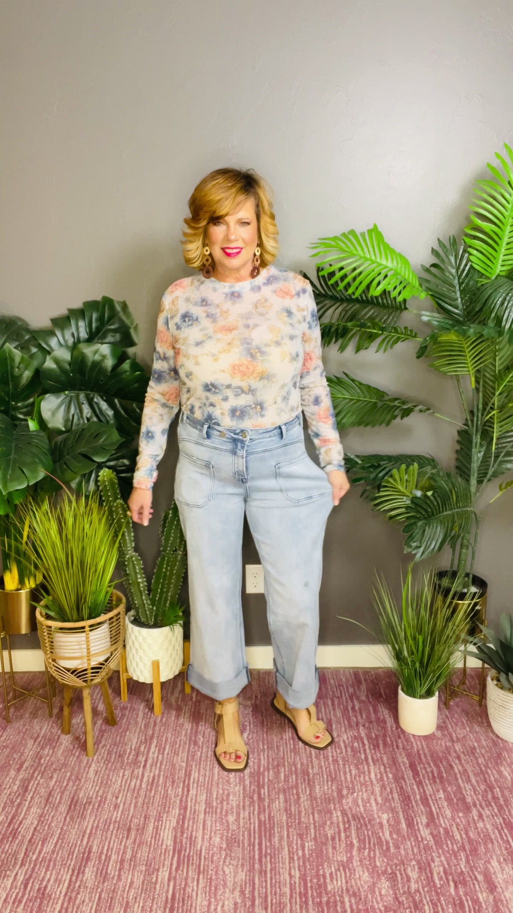 The BEST new trendiest jeans we have come out with! SO SO stretchy, comfy and soft! Features front pockets and decorative waist buttons. Waist is stretchy also! Inseam listed on the size chart is total length (unrolled). Comes rolled at the bottom and steamed to stay rolled, but can be unrolled- not stitched.